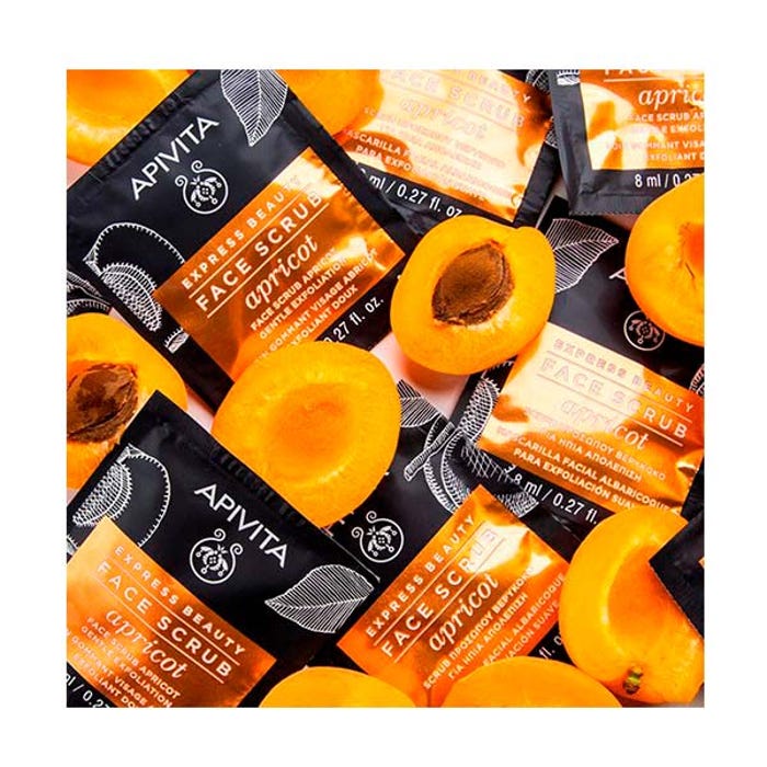 La crema exfoliante suave con albaricoque, una de las frutas favoritas de la región del mediterráneo, limpia la piel con suavidad sin deshidratarla.